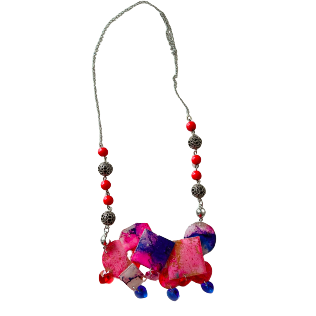 Discover our unique, one-of-a-kind alcohol ink statement necklaces. Each piece is a vibrant, wearable work of art, perfect for adding a pop of color and creativity to any outfit. Handmade with care, no two necklaces are alike, ensuring you have a truly exclusive accessory.
